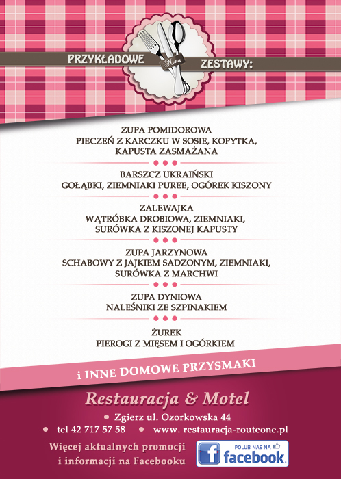 Lunch dwudaniowy (zestaw dnia) – 40 zł/zestaw. PRZYKŁADOWE MENU